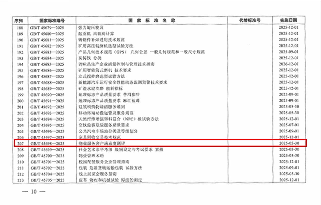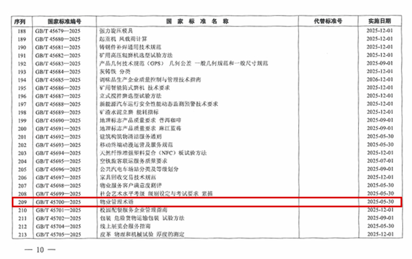国家标准《物业服务客户满意度测评》《物业管理术语》
